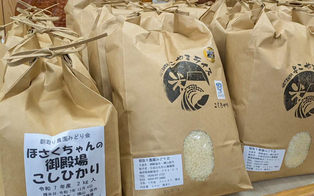 そのほか、季節の商品(夏はもろこし、冬は水菜漬け)・御殿場こしひかり・しょうゆ・みそ・豆腐などを取り揃えております。
