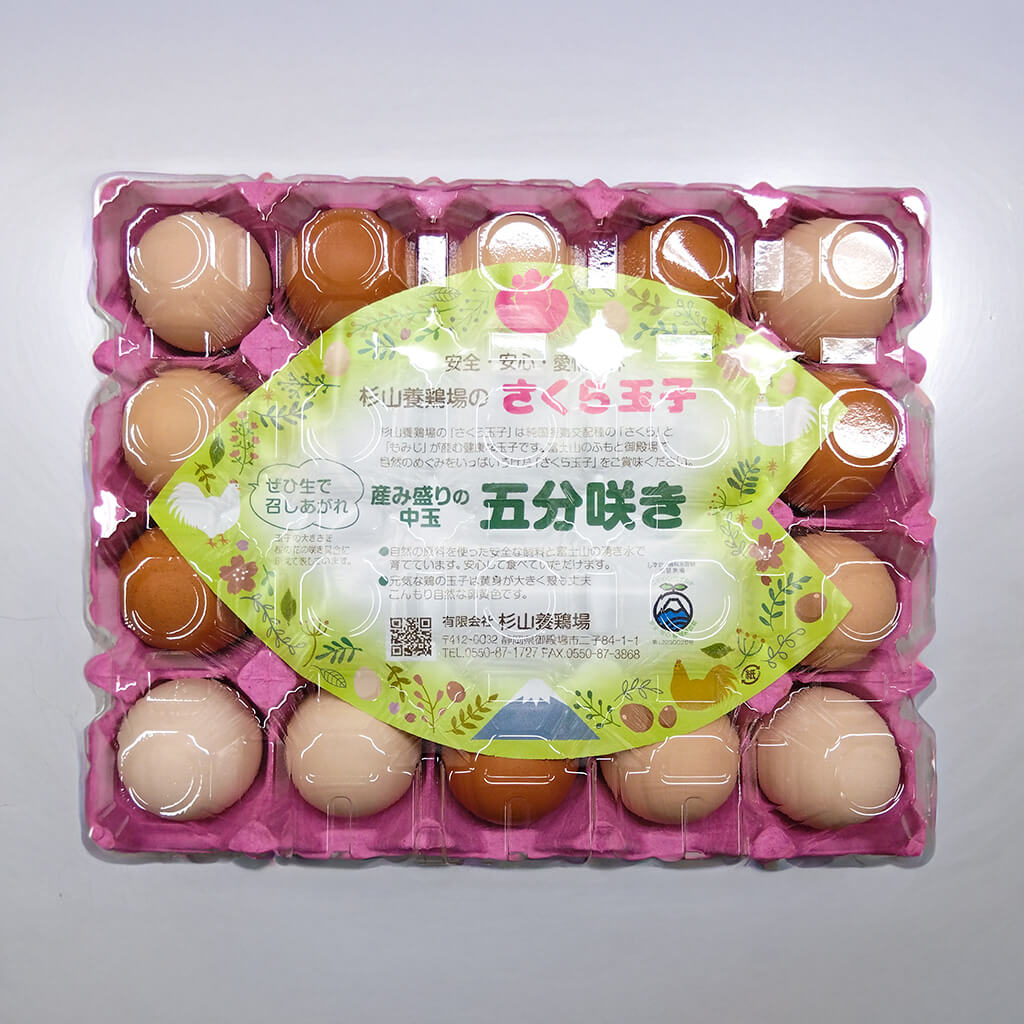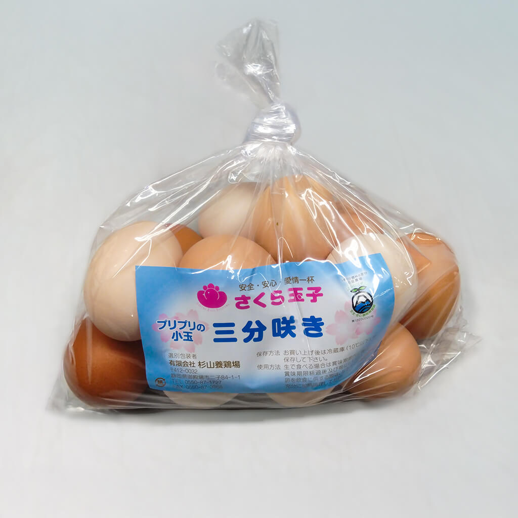 サイズは、さくらの花の咲き具合にたとえて小さいたまごは三分咲き、中くらいの大きさは五分咲き、大きいたまごは八分咲きとよんでいます。